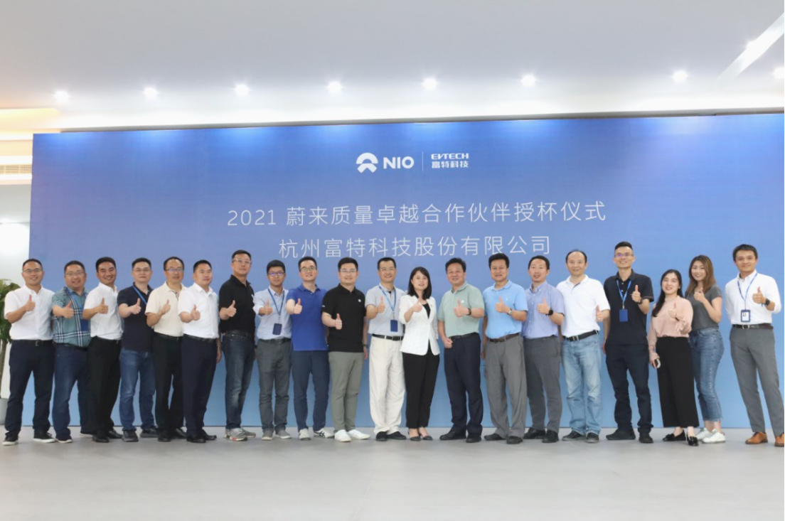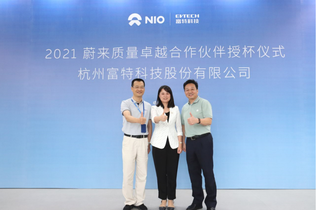 7月9日下午,2021蔚來質(zhì)量卓越合作伙伴授杯儀式于浙江富特科技股份有限公司安吉工廠舉辦。