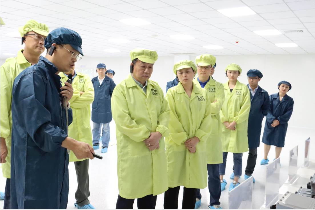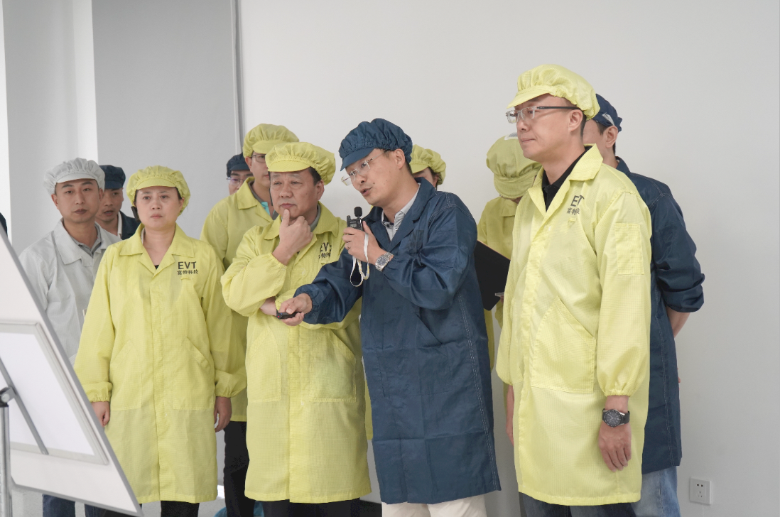 隨后,在現(xiàn)場工作人員的指引下,各位領(lǐng)導(dǎo)、嘉賓分為四個參觀指導(dǎo)小組,按照生產(chǎn)線要求著裝靜電服、佩戴靜電帽、穿戴靜電鞋套,進(jìn)入產(chǎn)線參觀指導(dǎo)。