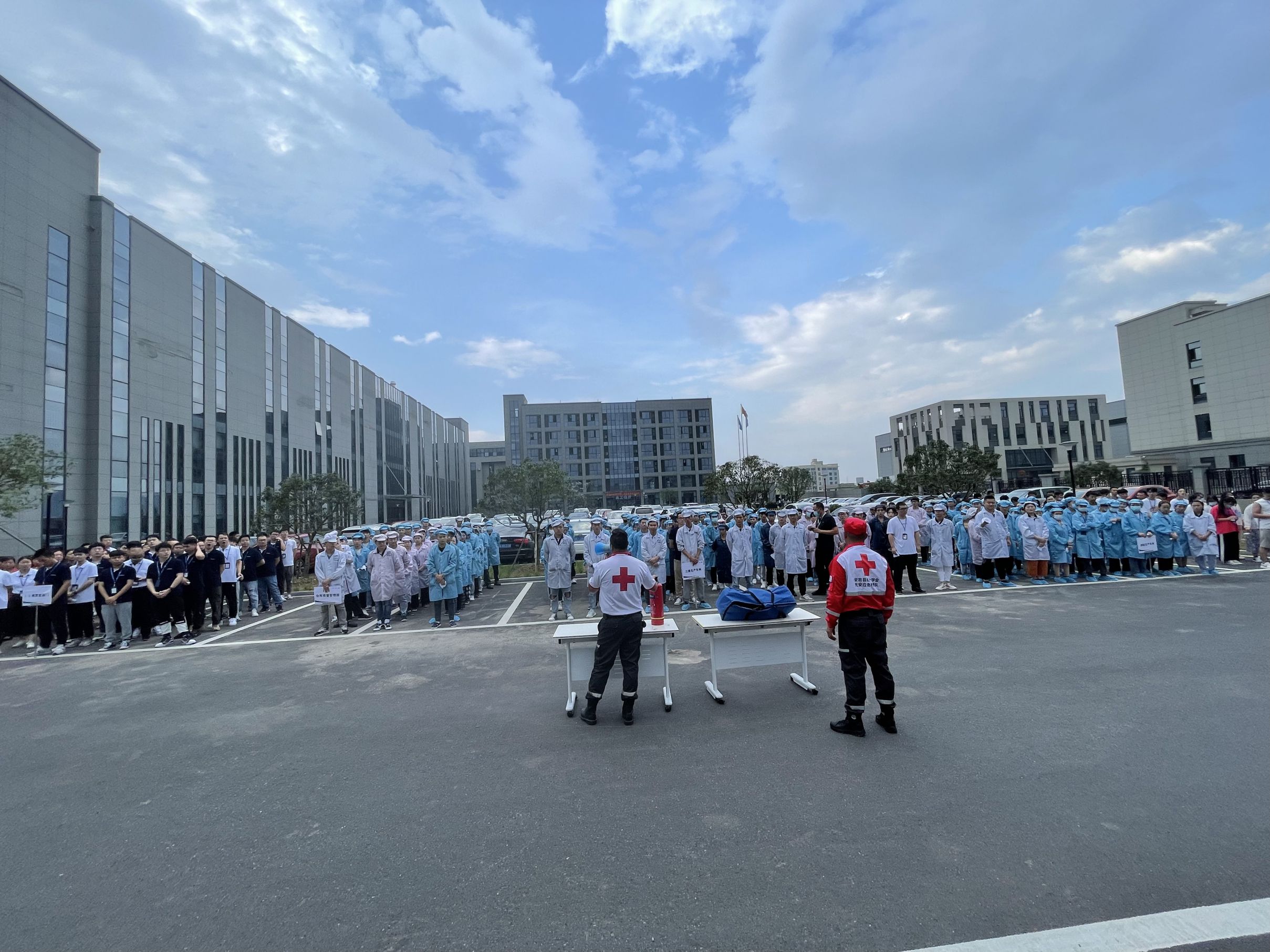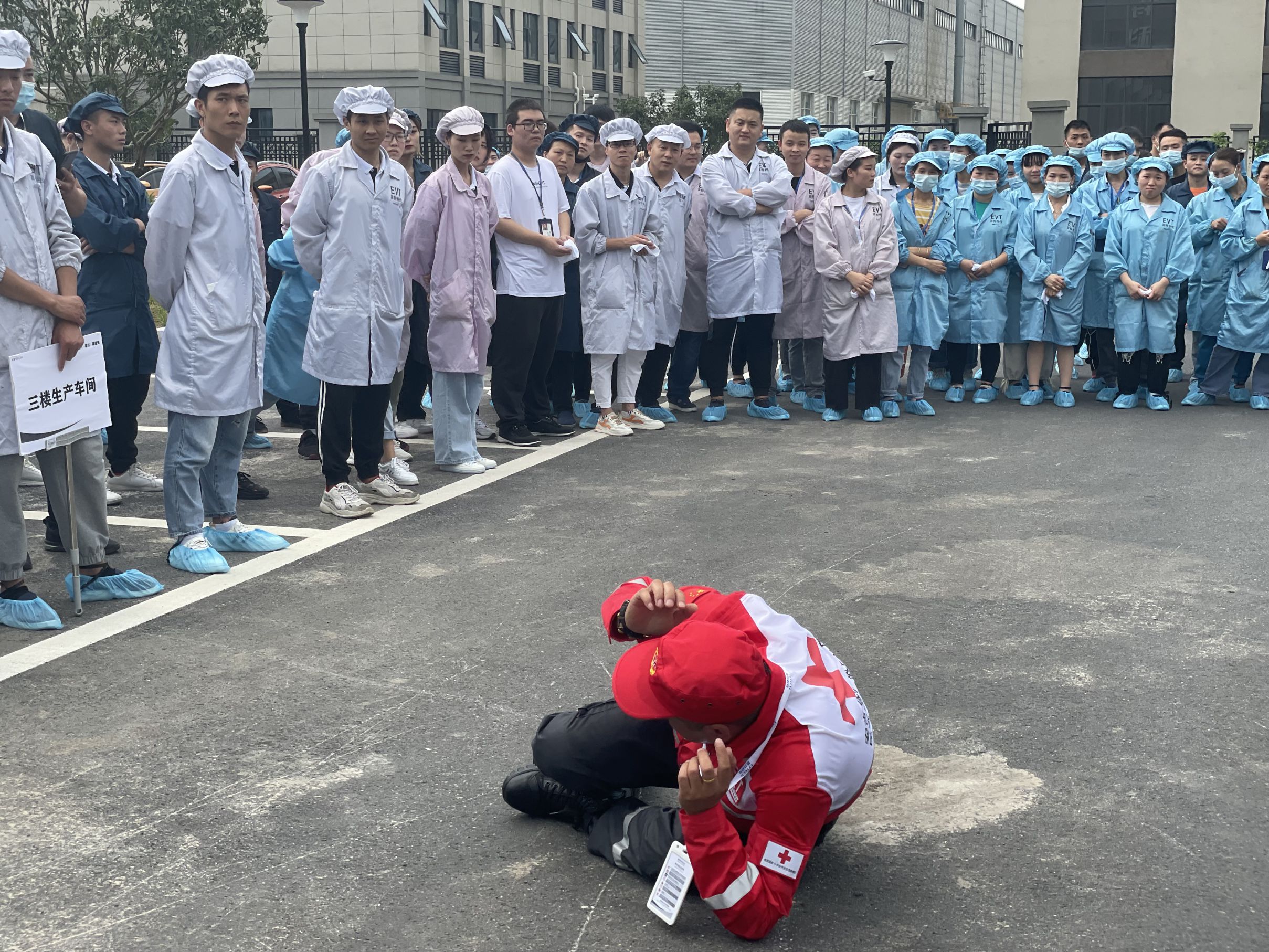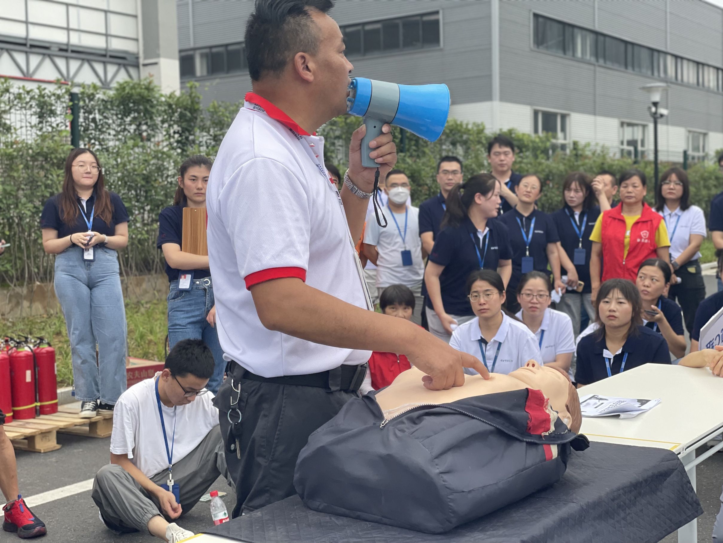 在消防員的演示與指導(dǎo)下,大家學(xué)習(xí)并掌握了滅火器的正確使用方式,牢牢記住了滅火器使用的四字訣“搖、拉、握、壓”。隨后紅十字會成員向員工們演示了心肺復(fù)蘇的正確步驟,為大家普及基礎(chǔ)急救知識。